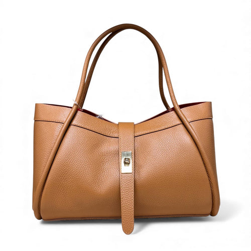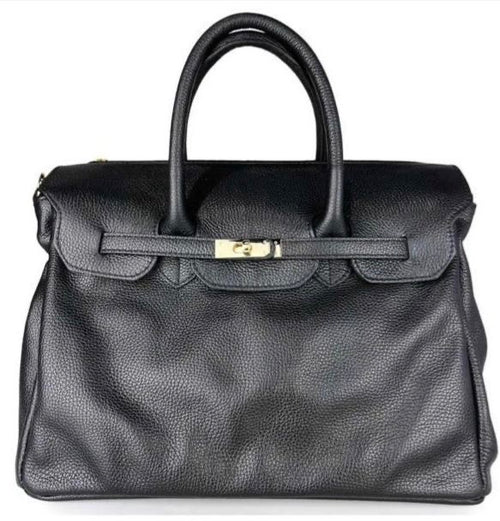 Borsa con due Manici da portare a spalla o a mano ,realizzata artigianalmente con VERA PELLE DI VITELLO MARTELLATA MADE IN ITALY con chiusura metallica frontale a Fermaglio che la distingue nel suo stile Classico e Moderno. Design strutturato e funzionale,interno foderato in tessuto ,taschino con cerniera e due senza ,tracolla regolabile e removibile.